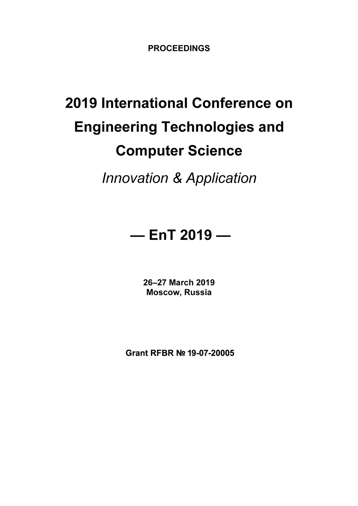 Proceedings of the 2019 International Conference on Engineering Technologies and Computer Science: Innovation & Application